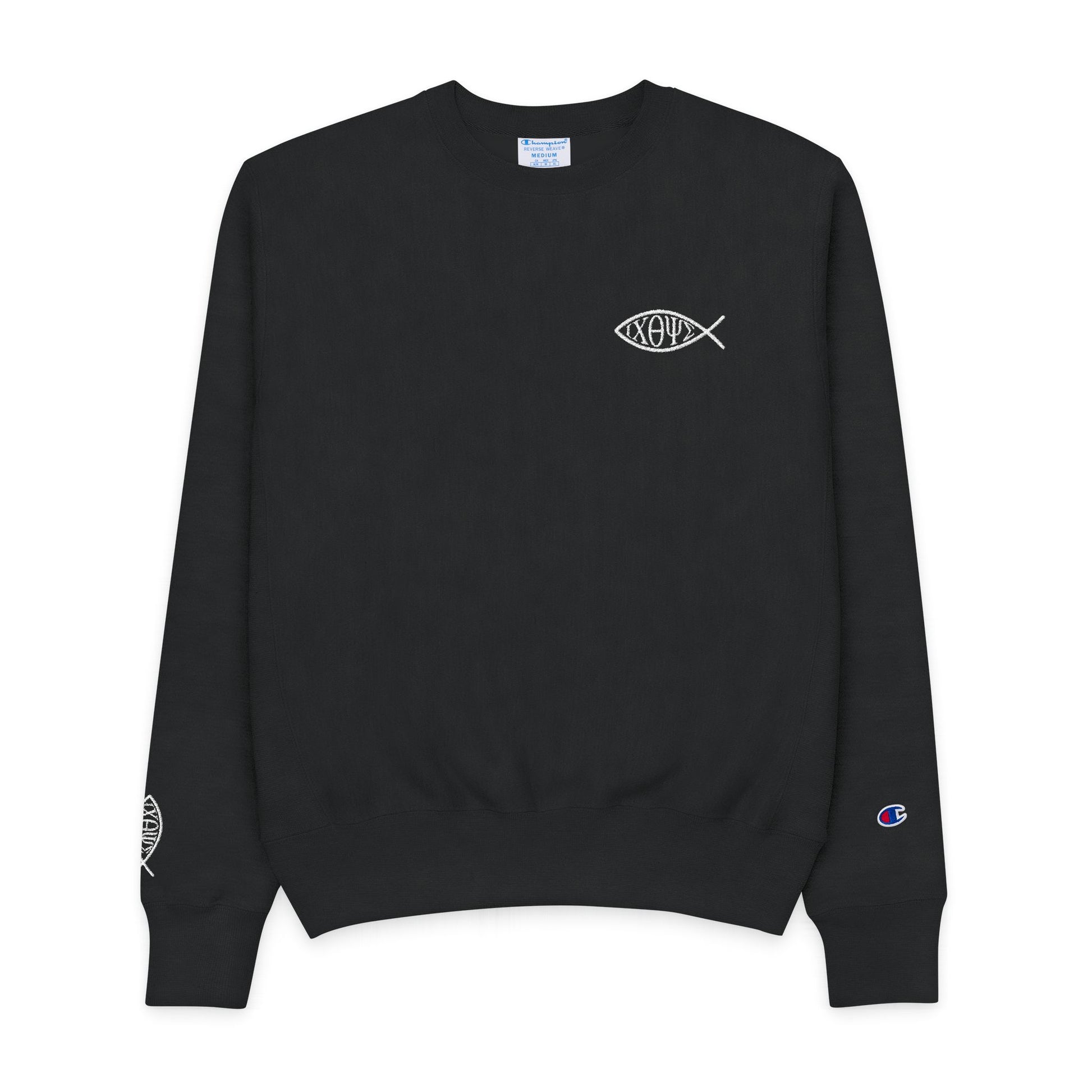 Greek Men’s Champion® Fish Design Crewneck Sweatshirt — ICHTHYS